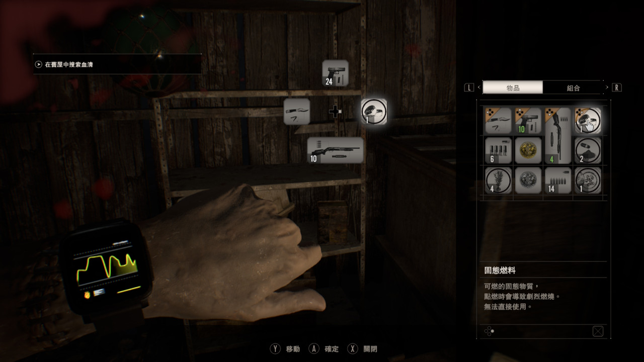 補血和彈藥都是消耗類的有限資源,背包格子亦有容量限制,為了對付"生化危機",謹慎地運用資源,也是這系列的招牌元素。本作中大部分的資源點會視玩家身上的物資狀況動態分配,我自己普通難度玩下來,覺得配得很巧妙,始終處於子彈血包快要見底、尚能應急的狀態。