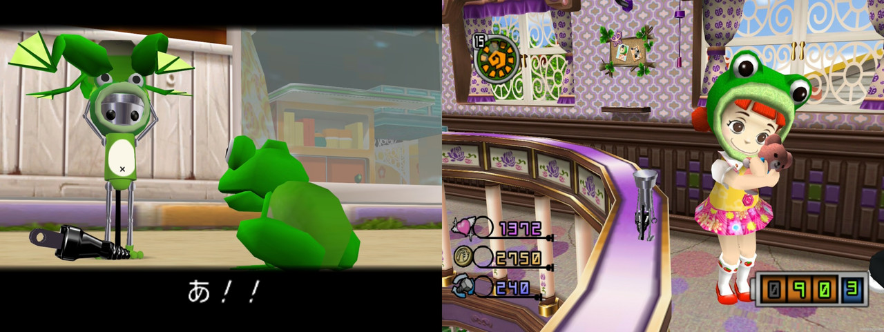 風格可愛,其實主線故事挺沈重:爸爸愛花錢買玩具,導致家裡很拮据,桌上到處都是積欠的帳單;從前他們有一隻大機器人玩伴,因為付不出對應電費,被丟在地下室角落。貧窮夫妻百事哀,感情不睦之下,女兒也因此被冷落,變得怪怪的,成天帶著蛙帽,說著 Kero Kero 的青蛙語。