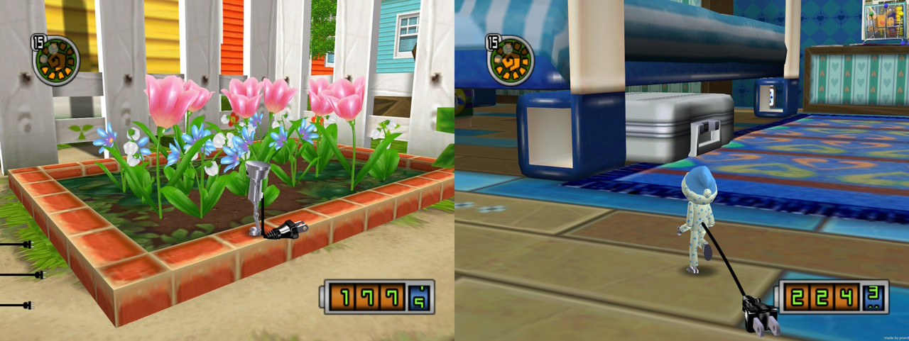 玩家操控高 10 公分的機器人,很小一隻,想當然爾,關卡特別著重在縱軸高度上的設計,有些地方可以沿著抽屜邊緣或是垂下的電線慢慢爬上,但也有不少重要場所如二樓臥室、櫥櫃上方,得透過雲梯和橋樑裝置才能抵達。