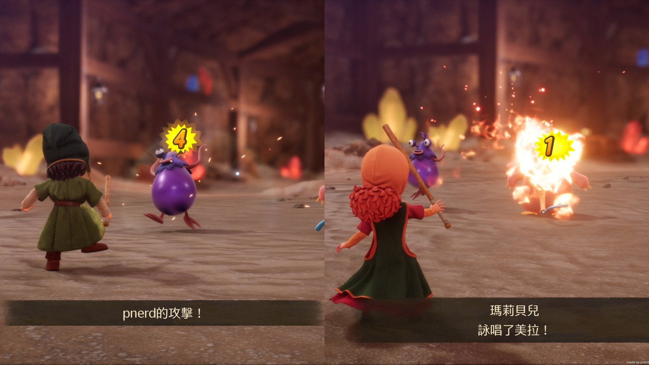 相比HD2D的三代,這次能看到角色們的攻擊動作;棒打茄子、火燒怪物,觀感極好。