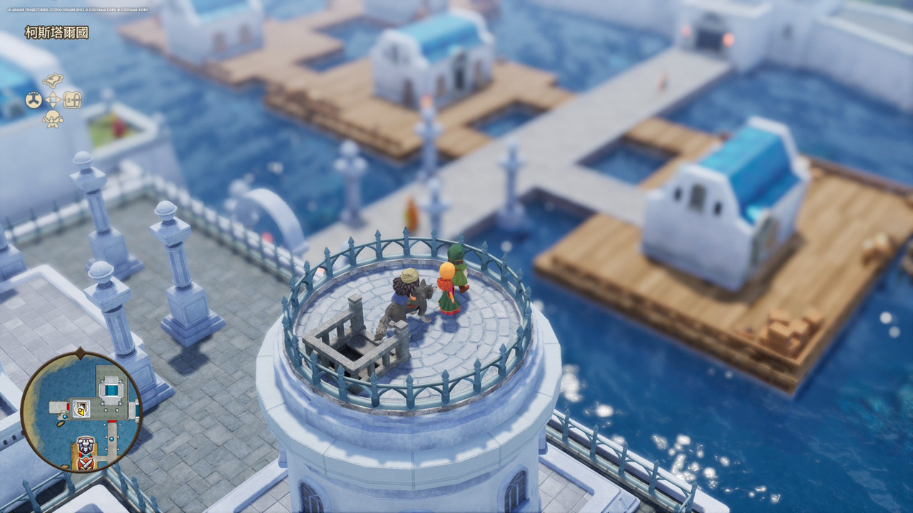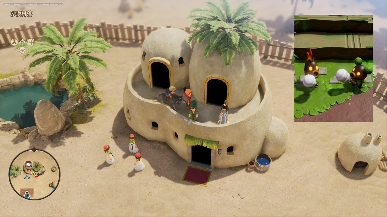 美術方面,小鎮城堡大都長得差不多,再夾雜一些海港、沙漠、花園、池塘等等不同風貌。沙漠那個土房造型,我覺得有點像薩爾達系列中的德庫果一族。