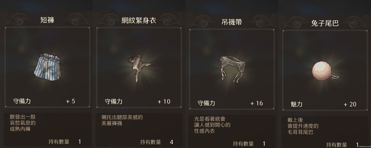 - 沒有相應的服裝造型,我想看內褲勇者還有絲襪兔尾大姊啊!