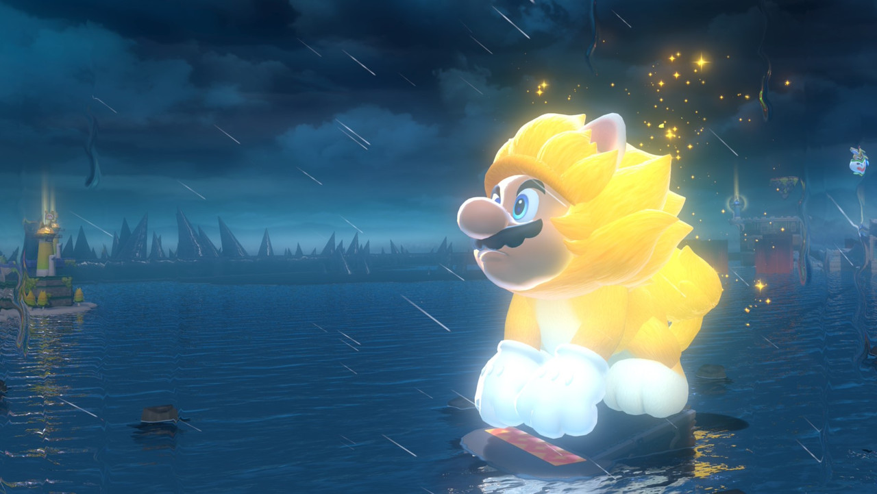 連瑪利歐與庫巴,都是以貓咪型態對戰;瑪利歐會變成超級賽亞貓。