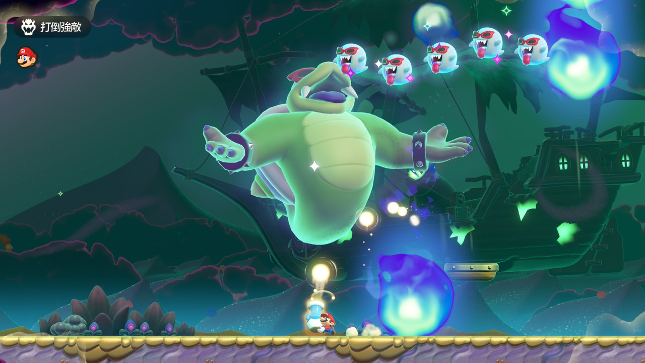 邊閃躲從天而降的鬼火,邊射擊從幽靈船飄出來的羅伊,害羞幽靈也跟著戴上潮墨鏡,有趣。