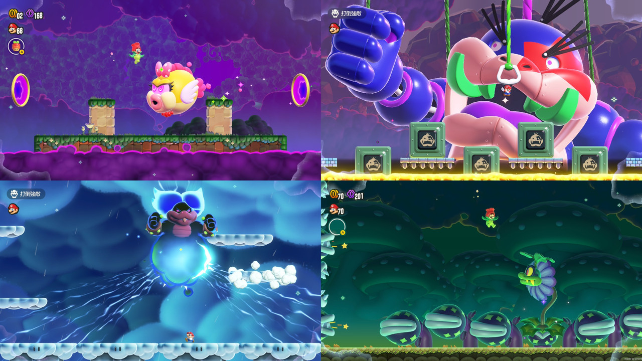 七人各有不同型態,泡泡魚溫緹、巨大人偶莫頓、雷公雲洛德威格、很像Cuphead亂入的植物伊吉;頭一次覺得庫巴軍團成員這麼有特色。