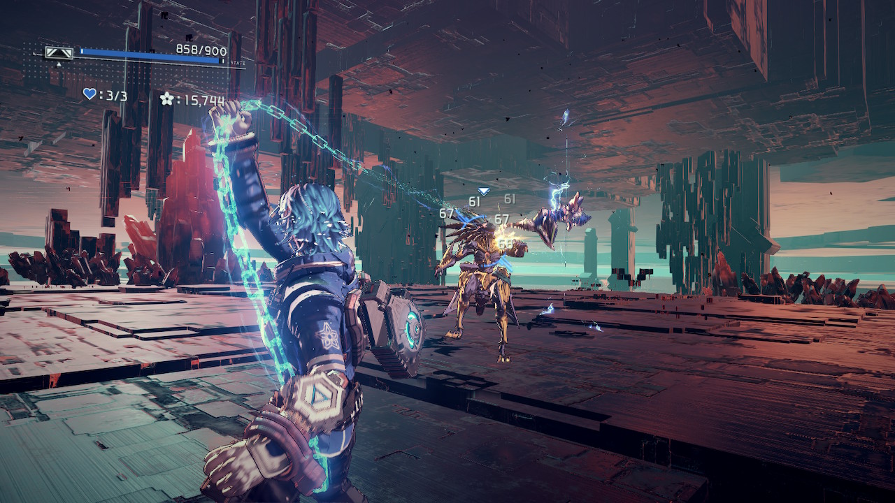 異界鎖鏈,賽博科幻風,主打雙搖桿操控,透過鎖鏈勾勒和繞圈,延伸出新穎的動作元素,只不過角色、故事和場景風格,自己比較不喜歡。
