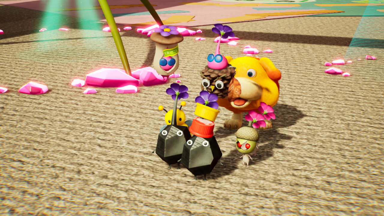 戴上東西的皮克敏,變得更有特色,把撿來的寶物與皮克敏做個融合,手遊這點真的棒;不過我覺得這裝飾皮克敏是此次更新最薄弱的一個項目,數量太少且從地圖中把它們找出來的玩法,跟皮克敏本體玩法的精隨「指揮皮克敏」並無掛勾,全部 24 隻找完、欣賞一下就收工了。