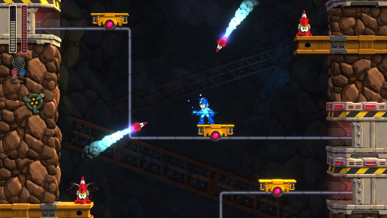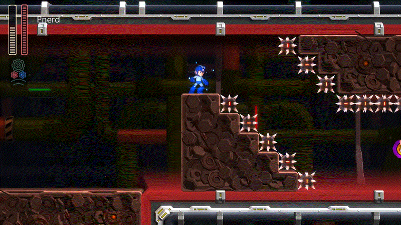 打完頭目後,可以獲得對應的攻擊能力,是洛克人的傳統特色;直來直往的鑽子、充當防護罩的毒液、垂直落下的磚頭、沿著地板遊走的電球等等,花樣多、不重複,特定場合可以切換應對;但會消耗能量,加上每一種攻擊模式都很特別,最泛用的還是原始的直線能量砲。