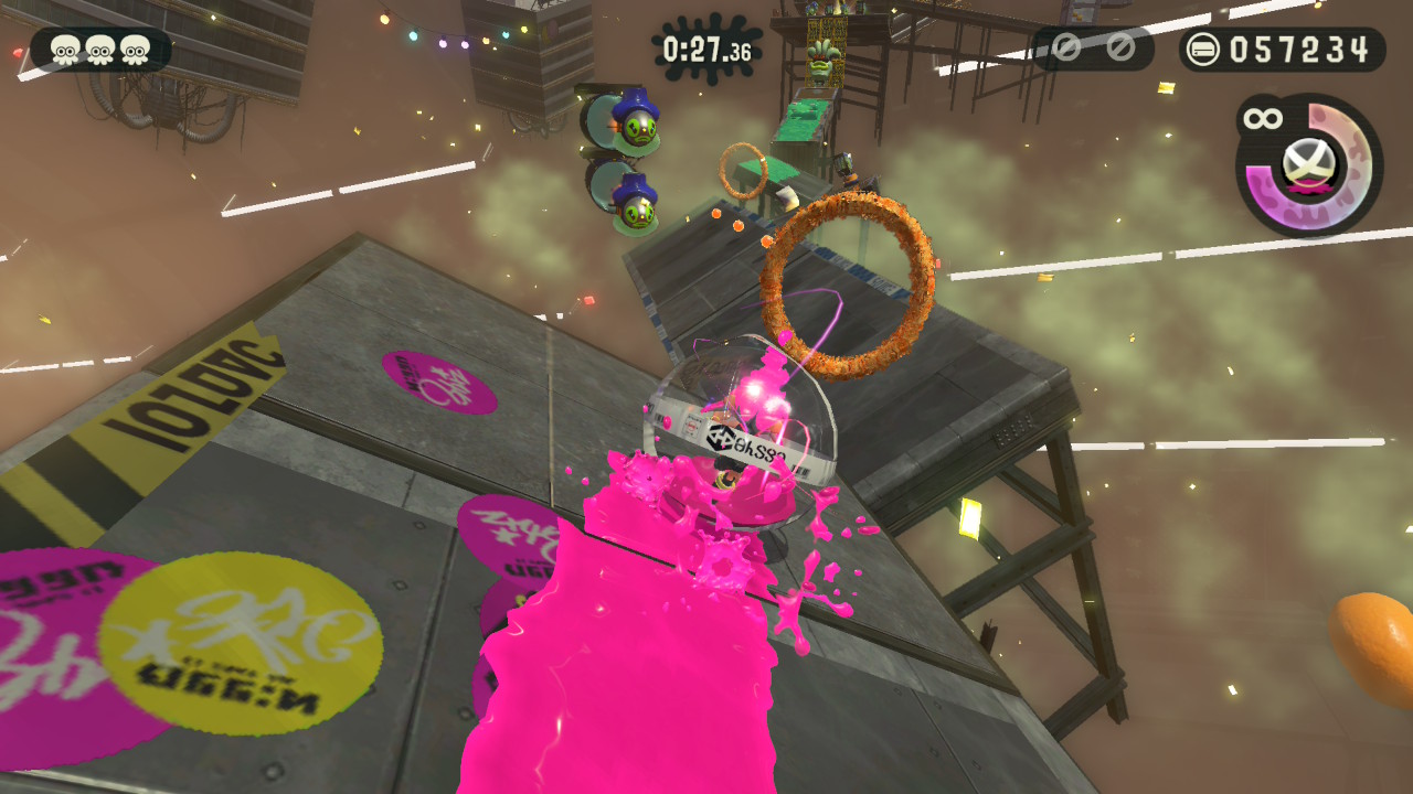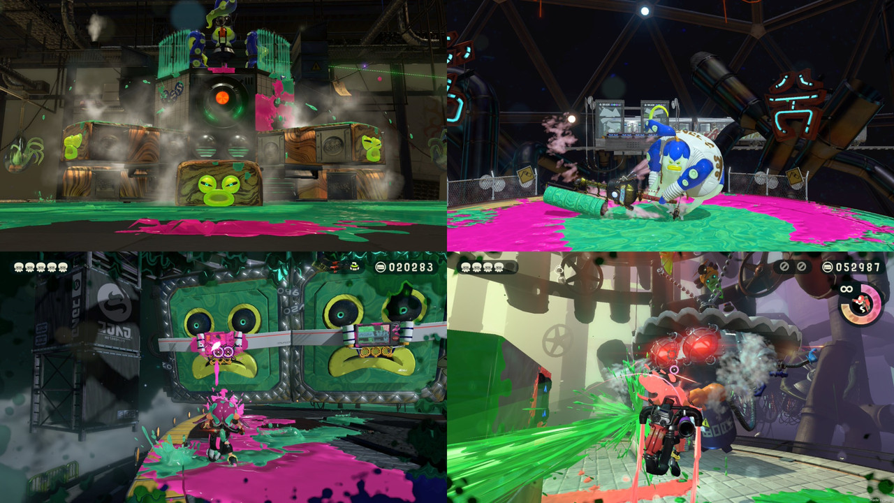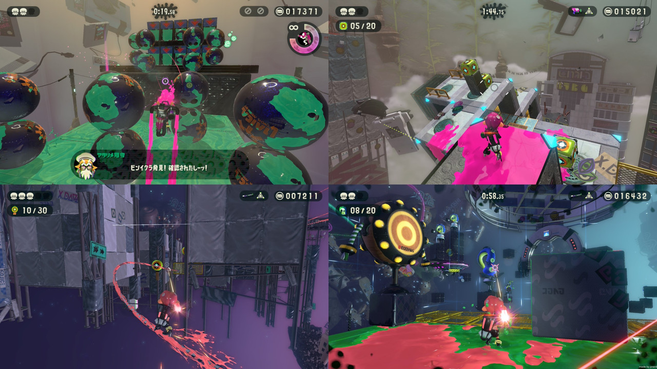 關卡的挑戰形式,除了打敗敵人,也有引進線上規則戰的推塔和運送,還有推滾撞球、限用大招如噴射背包闖關、全程軌道滑行、不沾到敵人墨水、時限內打靶等等,類似本篇中教學用途的英雄模式,但花樣很多。