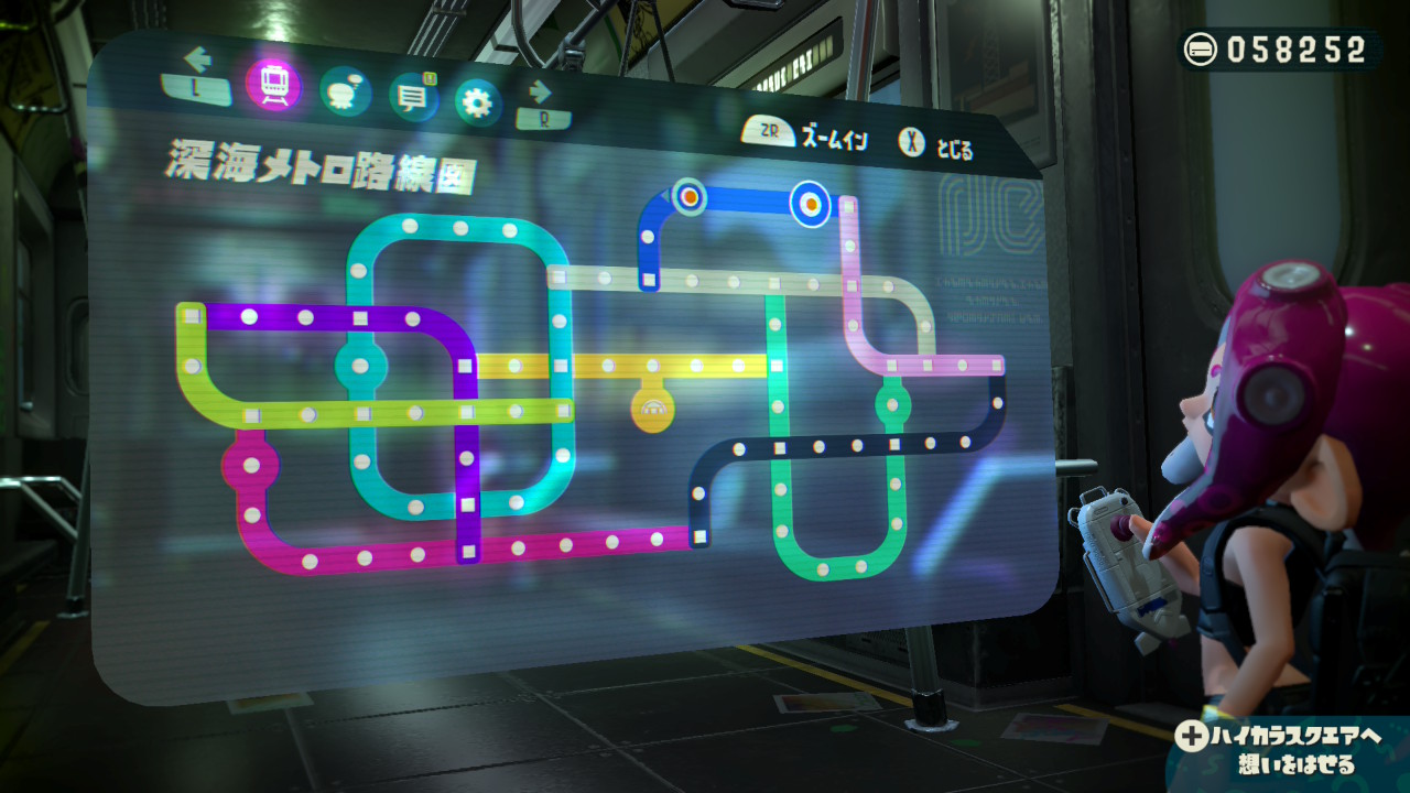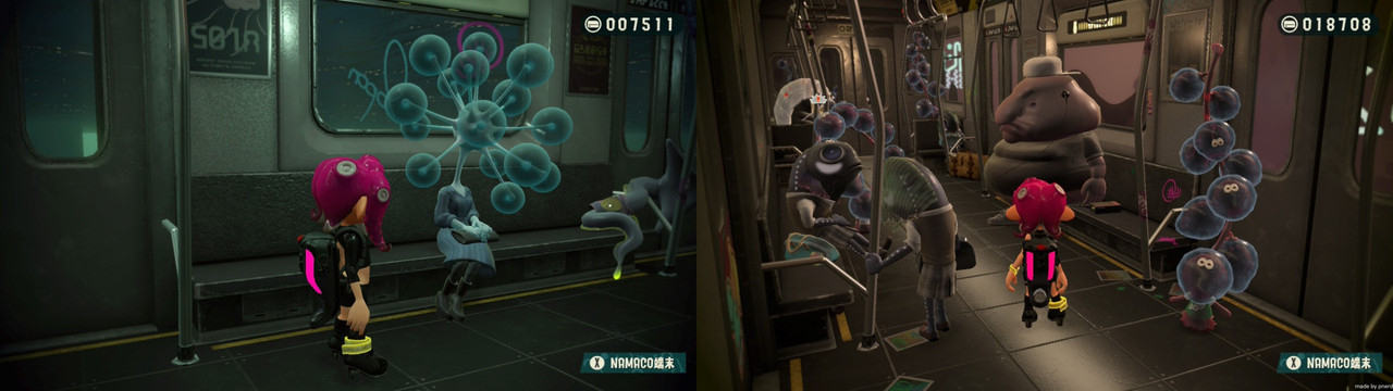 玩家跟隨喪失記憶的章魚妹子小八,在陰暗老舊的深海地下鐵中央站醒來,闖蕩各車站、開啟環狀線,並與公主姬與DJ駭客,破壞反派人工智慧電話筒的大計。復古霓虹、列車巡禮是這個 DLC 的主題設計;車上有著不同的海洋生物,再次展現 Splatoon 出色的世界觀設定。